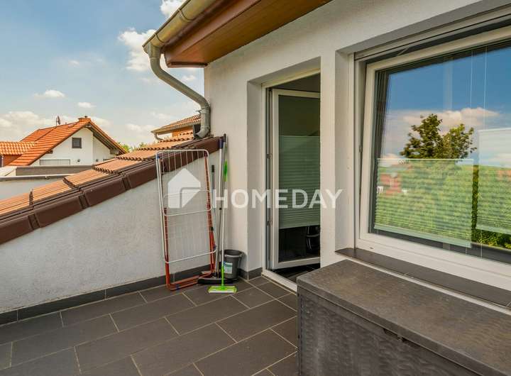 Der pflegeleichte, schön gestaltete Garten bietet ausreichend Platz für die Bewohner. Die Dachterrasse und der Balkon bieten einen tollen Ausblick auf die landschaftliche Schönheit.