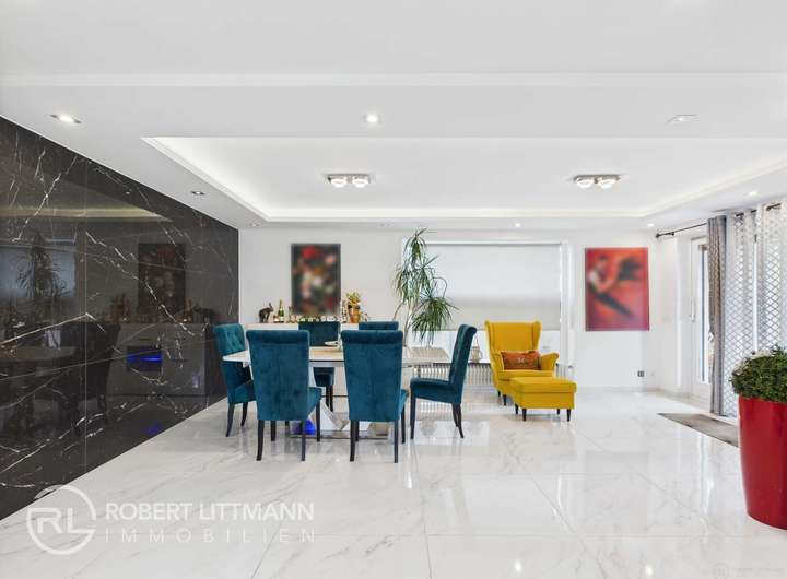 - Bodenbeläge: Marmorfliesen, hochwertiger Vinylboden
