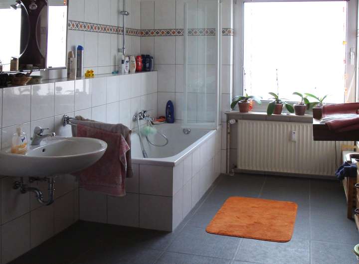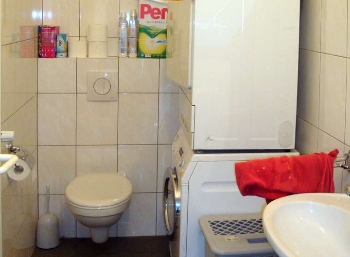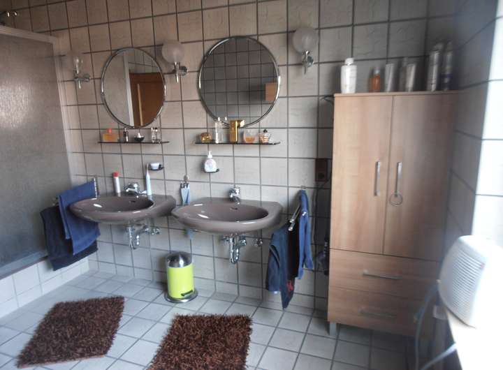 und ein Doppelwaschbecken, damit morgens kein Stau entsteht. Das Gäste-WC wurde vor einigen Jahren komplett neu gefliest und mit neuen Sanitär-Objekten versehen.