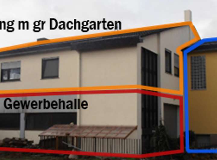 Große Dachgarten-Whg, darunter Gewerbehalle, Vorderhaus, - MFH