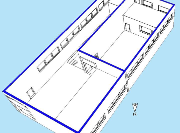 Im re der beiden Büroräume kann man wieder Duschen und WCs einbauen.