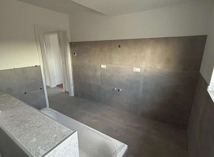 •Großzügiges Badezimmer mit Badewanne und T-Wand (inklusive hochwertiger Unterschränke im Mietpreis)