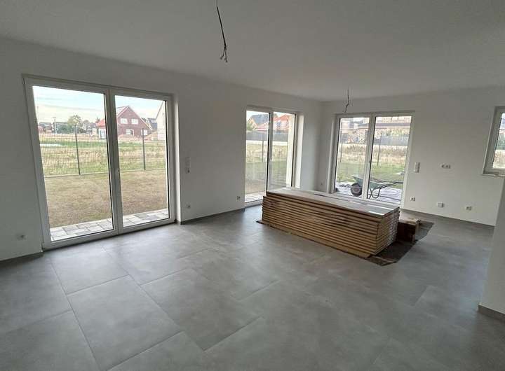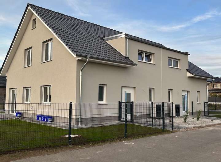Zur Vermietung steht eine moderne Neubau-Doppelhaushälfte mit einer Wohnfläche von ca. 122 m² auf einem ca. 415 m² großen Grundstück.
