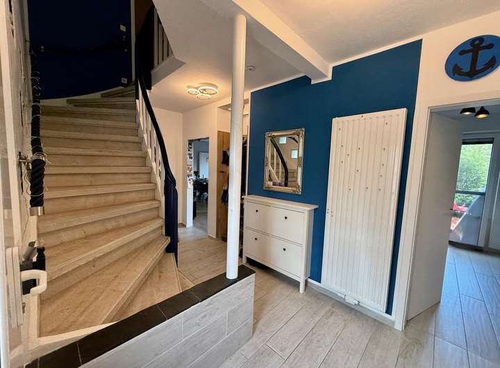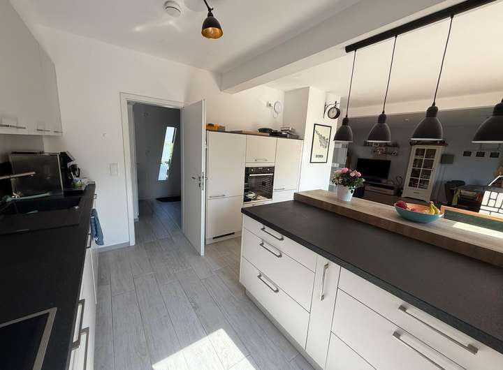 Das Haus wurde 1963 erbaut und 2019 im Rahmen einer Kernsanierung vollständig modernisiert. Lediglich das Mauerwerk ist noch original. Dabei wurden sämtliche Gewerke neu installiert - inklusive: • neuer Strom-, Wasser- und Heizungsleitungen • moderne Heizungsanlage mit effizienter Fernwärme • komplett neue Fenster & Türen (inkl. Wärmegedämmte Glasbausteine) • Außendämmung für optimalen Energiestandard • Intelligente Gebäudesteuerung • Netzwerktechnik und Videoüberwachung (Außenbereich) • Neu angelegter Garten Ein echter Clou: Durch die versetzte zweite Hausreihe wirkt das Haus wie ein Reihenendhaus - mit deutlich mehr Ruhe & Privatsphäre. Auf rund 120 m² Wohnfläche + Volle Unterkellern (60qm) + Dachboden als Stauraum (~45qm) bietet das Haus alles, was man sich als Familie oder modernes Paar wünschen kann: •EG: Großzügiger Wohn‑ und Essbereich mit offener Küche, Gäste-WC •OG: Zwei große Schlafzimmer, ein kleineres. Modernes Badezimmer •DG: Ausgebaut und als Lagerfläche voll nutzbar •KG: Werkstatt, Heizungsraum, großer Lagerraum und Tiefgarage mit direktem Hauszugang