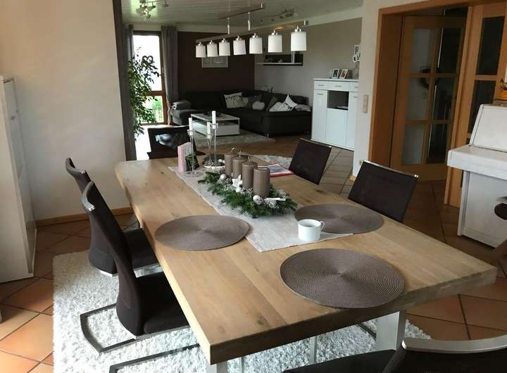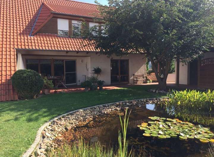Das hier angebotene freistehende Einfamilienhaus wurde im Jahr 1994 in massiver Bauweise auf einem 865 m² großen Eigentumsgrundstück errichtet. Das Haus verfügt insgesamt über ca. 250 m² Wohnfläche und ist voll unterkellert und hat zwei große Balkone. Des Weiteren ein Nebengebäude mit großer Nutzfläche und Doppelcarport. Schön angelegter Garten mit Teich und mehreren Terrassen und Sitzecken.