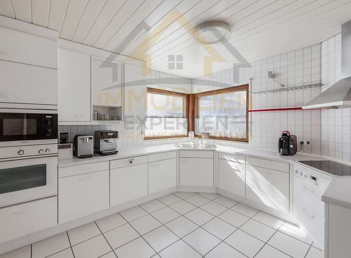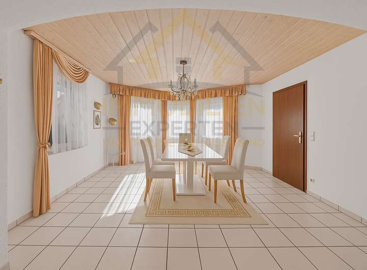 Im Erdgeschoss empfängt Sie ein helles, einladendes Wohnzimmer mit gemütlichem Kachelofen, der besonders in den kühleren Monaten eine behagliche Atmosphäre schafft. Der angrenzende Wintergarten erweitert den Wohnraum auf harmonische Weise – lichtdurchflutet, freundlich und mit einem wunderschönen Blick in den gepflegten Garten.