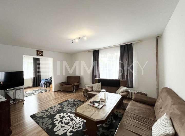 Das Haus erstreckt sich über zwei Etagen und bietet mit insgesamt sieben lichtdurchfluteten Zimmern viel Platz für Familien, Paare oder auch zwei Generationen – denn die Aufteilung ermöglicht bei Bedarf eine Nutzung als Zweifamilienhaus.