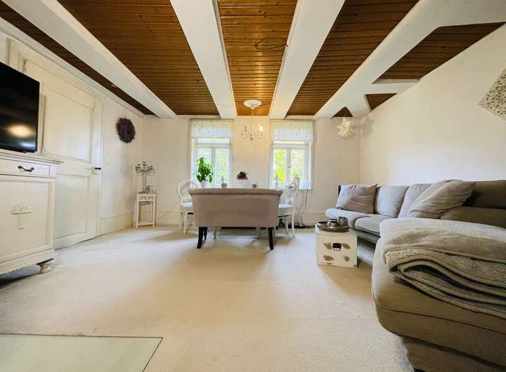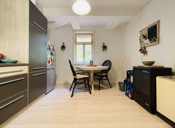 Das denkmalgeschützte und gepflegte Wohnhaus bietet rund 155 Quadratmeter Wohnfläche und ist derzeit in zwei gleich geschnittene, gleich ausgestattete Drei-Zimmer-Einheiten mit separaten Eingängen aufgeteilt. Beide Wohnungen überzeugen durch klare Grundrisse, helle Räume und moderne Duschbäder. Im Obergeschoss sorgt eine zusätzliche Abstellkammer für praktischen Stauraum. Innen spürt man sofort den besonderen Altbau-Charme: Natürliche Materialien, gewachsene Substanz und eine angenehme Wohnatmosphäre, die Wärme und Geschichte ausstrahlt.