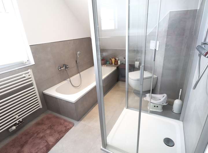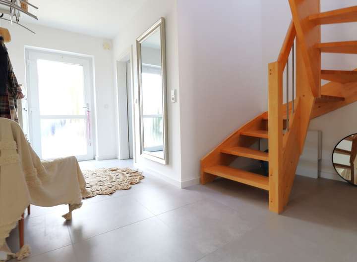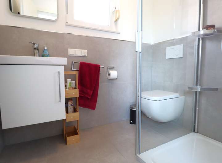 Das Haus verfügt über insgesamt drei-vier helle Zimmer, darunter zwei gemütliche Schlafzimmer, die ausreichend Platz für die ganze Familie bieten. Die zwei modernen Badezimmer sind mit hochwertigen Fliesen ausgestattet und tragen zu einem luxuriösen Wohngefühl bei.