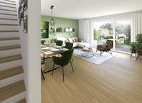 Ihr neues Zuhause befindet sich in grüner Umgebung. Das unmittelbare Umfeld ist geprägt durch neu errichtete Einfamilienhäuser in einer jungen Nachbarschaft, in der Nähe zu weiten Feldern und Wäldern, die zum Spazierengehen oder Verweilen einladen.