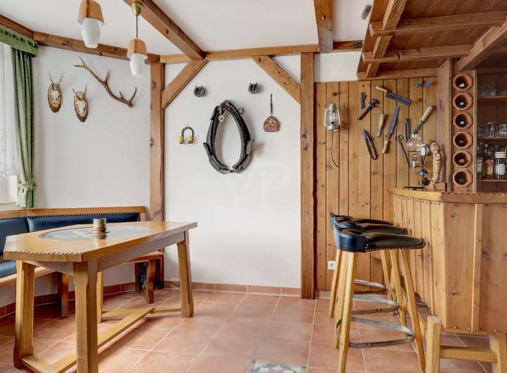 Durch die Hanglage des Grundstücks erhält auch das Hanggeschoss eine besondere Qualität: Hier befindet sich eine weitere Terrasse, die direkt vom Hanggeschoss aus zugänglich ist. Diese Ebene bietet mit zwei weiteren Zimmern vielseitige Nutzungsmöglichkeiten – ob als Kinderzimmer, Hobbyraum, Home-Office, Fitnessbereich oder Rückzugsort für Gäste. Darüber hinaus steht ein separater Kellerbereich zur Verfügung, der zusätzlichen Stauraum bietet und die funktionale Ausstattung des Hauses ideal ergänzt. Als besonderes Highlight ist hier die Kellerbar zu erwähnen, die zu geselligen Stunden einlädt.