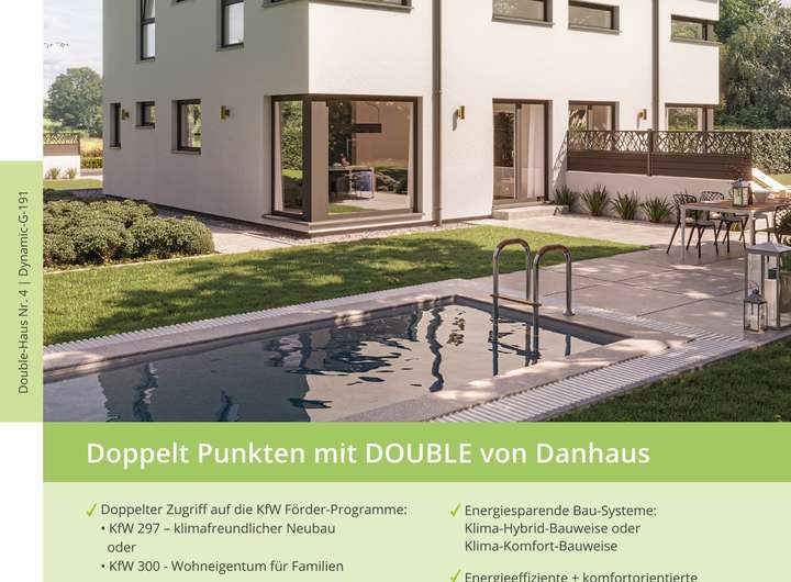 Dieses Angebot zeigt ein exemplarisches, noch zu bauendes Danhaus. Das Grundstück ist im angegebenen Preis bereits inklusive, sowohl das ausgewählte Haus wie auch die Ausbaustufe lassen sich selbstverständlich noch an Ihre Bedürfnisse anpassen.