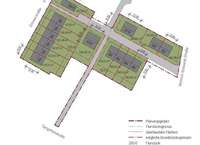 Für die Grundstücke gibt es eine erste Konzeptstudie, welche zwei Varianten einer möglichen Bebauung mit Einfamilien-, Doppel- und Reihenhäusern vorsieht.