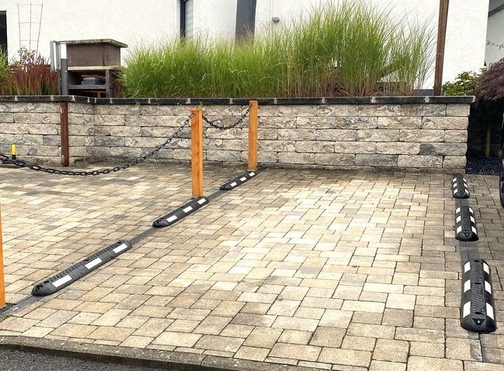 Straßenseitig befindet sich der befestigte Stellplatz.