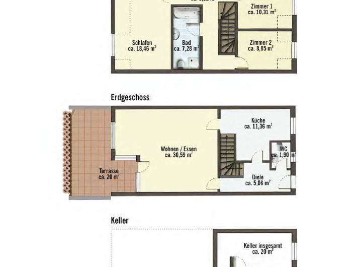 Im Keller sind noch zwei große Räume, die als Hauswirtschaftraum und Abstellraum vorgesehen sind.