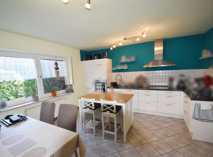 Das Wohnzimmer und die Küche sind die beiden größten Räume dieser Immobilie. Die Küche ist mit ihren knapp 20 m² ein echter Hingucker, da dort noch ein weiterer Esstisch aufgestellt werden kann und mit ihren großen Fenstern zum riesigen Lichterzeuger wird.