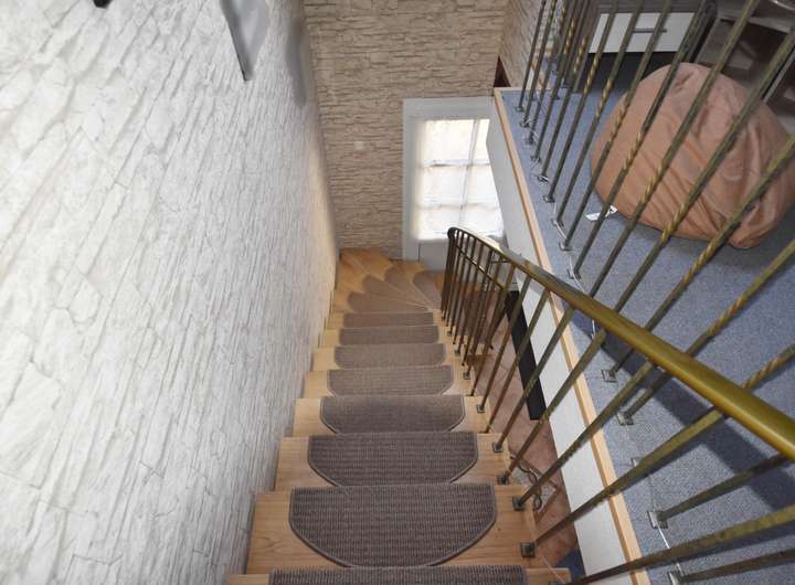 Über den Eingangsbereich gelangt man dann über eine ästhetische Wendeltreppe in das Dachgeschoss des Hauses. Hier erwartet Sie ebenso eine offene und großzügige Raumkonstellation. Das Haus verfügt insgesamt über drei Toiletten, da auch das obere Badezimmer mit einer solchen ausgestattet ist.
