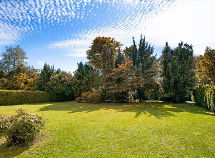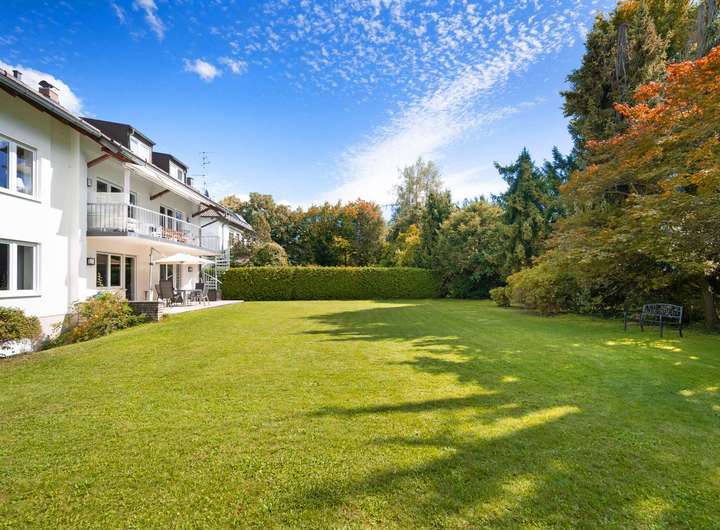 Exzellent und nahezu quadratisch geschnitten und optimal ausgerichtet, genießt das Grundstück den ganzen Tag über und bis in die Abendstunden viel Sonne. Ein weitläufiger Garten mit großzügigen Rasenflächen lädt zum Entspannen und Spielen im Grünen ein. Nadelbäume sorgen für Schatten und ein angenehmes Klima, ein wunderschöner, sehr alter kanadischer Ahorn beeindruckt vor allem im Herbst mit seiner bunten Blätterpracht. Dichte Hecken bilden eine immergrüne Einfassung und gewährleisten Sichtschutz und Privatsphäre. Der vorhandene alte Baumbestand muss nicht erhalten werden, da der Stammumfang jeweils weniger als 1 Meter beträgt. Das Grundstück ist aktuell mit einem Mehrparteienhaus aus dem Jahr 1957 bebaut, das weder wirtschaftlich noch technisch als erhaltenswert einzuordnen ist. Das Grundstück eröffnet vielseitige Bebauungsoptionen: Sowohl ein Einfamilienhaus mit zwei Vollgeschossen, als auch ein Doppelhaus oder ein Mehrparteienhaus wären denkbar. Zwei Geothermie-Anschlüsse sind auf dem Grundstück vorhanden.