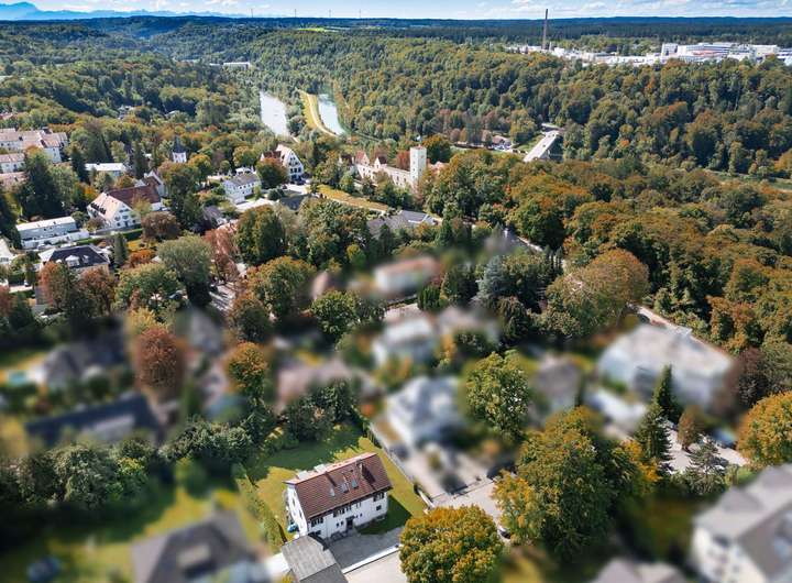 Nur wenige Schritte vom Ortskern entfernt, in unmittelbarer Nähe zum Isarhochufer und mit Blick auf die Grünwalder Burg befindet sich dieses attraktive, ca. 1.240 m² große Baugrundstück. Am Ende einer Anwohner-Sackstraße gelegen, präsentiert es sich absolut ruhig. Gepflegte Mehrparteienhäuser und eine gewachsene, intakte Nachbarschaft prägen die Umgebung. Quasi vor der Haustür liegt das Isarhochufer mit Fahrrad- und Spazierwegen und einem direkten Zugang zum Flussufer.