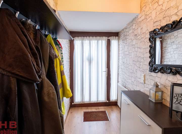 Dieses charmante Reihenendhaus überzeugt durch eine durchdachte Raumaufteilung, helle Wohnbereiche und einen schönen Garten mit Terrasse. Es ist ideal für Familien oder Paare, die Wert auf Komfort und Gemütlichkeit legen. Bereits beim Betreten des Hauses empfängt Sie ein kleiner Eingangsbereich mit Garderobe. Von hier aus gelangen Sie in einen weiteren Flur, von dem sich links der praktische Hauswirtschaftsraum sowie ein Gäste-Bad mit WC befinden. Rechts liegt die gut ausgestattete Küche, die mit Herd, Kühlschrank, Gefrierschrank und allen wichtigen Geräten keine Wünsche offenlässt. Der Flur öffnet sich anschließend in das großzügige, offene Wohn- und Esszimmer. Große Fensterfronten sorgen hier für viel Tageslicht und bieten direkten Zugang zur sonnigen Terrasse sowie zum gepflegten Garten. Ein perfekter Ort zum Entspannen oder für gesellige Abende mit Familie und Freunden. Über eine elegante Wendeltreppe erreichen Sie das Obergeschoss. Hier erwarten Sie drei Zimmer, die sich flexibel als Hauptschlafzimmer und Kinder- oder Gästezimmer nutzen lassen. Abgerundet wird diese Etage durch ein großes, komfortables Badezimmer mit Badewanne und Dusche. Über eine Leiter gelangt man auf den Dachboden, welcher mit ca. 18m² ausreichend Stauraum für Surfbretter und Skier aus den letzten Urlauben oder Kleidung und alte Spielsachen liefert. Zur Immobilie gehört außerdem eine Garage, die nur etwa 50 Meter vom Haus entfernt liegt und für sicheres Parken sorgt.