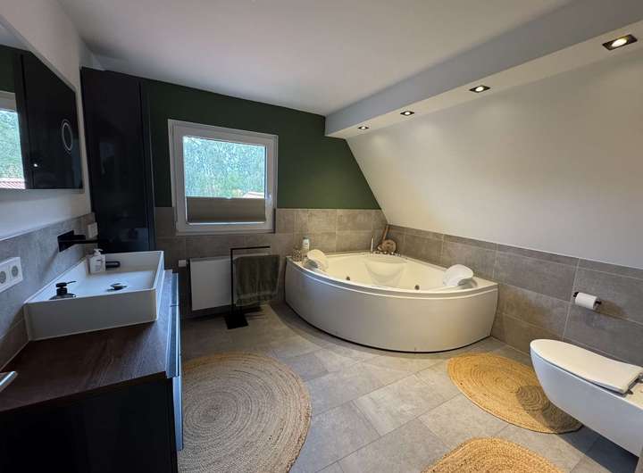 Entdecken Sie dieses charmante Einfamilienhaus, das perfekt für Familien geeignet ist, die Komfort und Modernität schätzen. Mit einer Wohnfläche von ca. 140 m² bietet dieses Haus 5 Zimmer, darunter 4 geräumige Schlafzimmer und 2 stilvolle Bäder. Das Badezimmer im Obergeschoss verfügt zusätzlich über eine Whirpool-Badewanne.