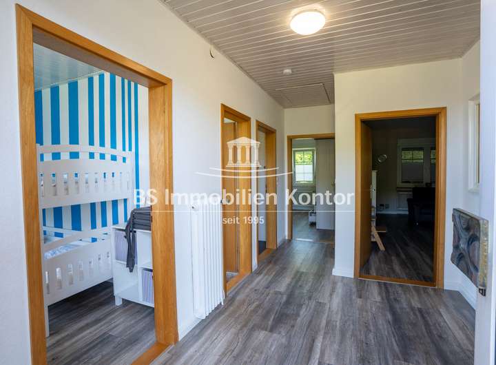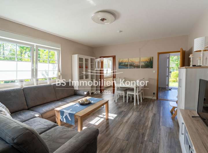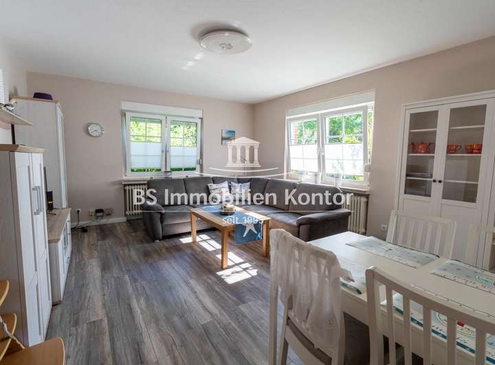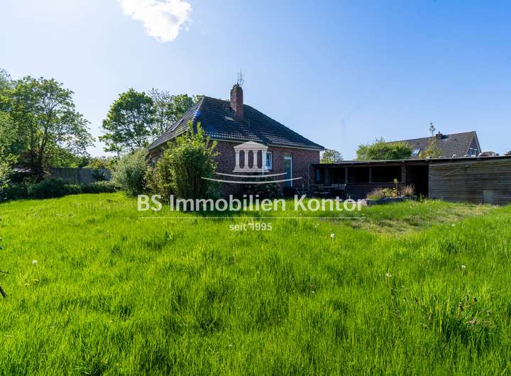 Dieser gemütliche Bungalow liegt im Ortskern von Groß Midlum und wurde 1962 in konventioneller Massivbauweise mit einem Walmdach erstellt. Das Eigentumsgrundstück bemisst ca. 1.026qm. Ein kleines Idyll umringt von viel Grün, in dem Ihrer Kreativität keine Grenzen gesetzt sind. Die Terrasse lässt sich durch den Flur betreten und befindet sich auf der Rückseite des Hauses. Die Immobilie weist im Keller einen Feuchtigkeitsschaden auf. Ein Angebot über die Kellersanierung i. H. v. 18.000,00€ liegt entsprechend vor. Beheizt wird das Objekt durch eine Gas-Zentral-Heizung (Bj. 2020). Im Jahre 2020 wurden das Bad, die Böden und die Küche erneuert sowie umfangreiche Malerarbeiten im Innenbereich durchgeführt. Die weißen Kunststofffenster sind mit einer Isolierverglasung und Jalousien ausgestattet. Die zahlreichen Fenster lassen die Räumlichkeiten hell und freundlich wirken und ermöglichen einen schönen Blick in den Garten. Das Obergeschoss bietet eine zusätzliche Ausbaureserve. Ein Objekt für Menschen, die sich mit handwerklichem Geschick Ihren Traum vom Eigenheim erfüllen möchten.