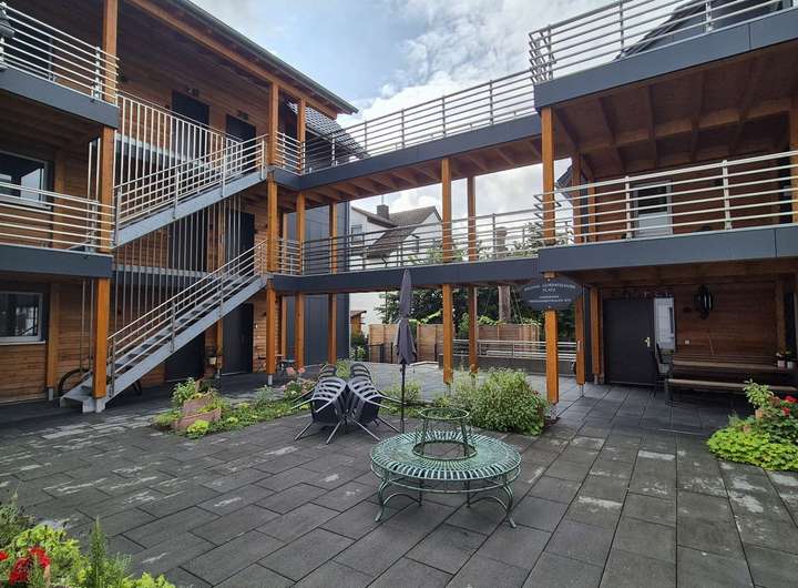 Eine Wohnanlage mit insgesamt 27 hochwertig ausgestatteten Apartments und Wohnungen – ideal für alle, die für eine bestimmte Zeit ein Zuhause suchen. Ob für Projektarbeit, berufliche Neuorientierung oder als Übergangslösung - Hier wohnen Sie komfortabel, flexibel und mit Stil. Die Anlage besteht aus insgesamt vier Häusern, die über einen offenen Laubengang miteinander verbunden sind. Dadurch entsteht ein großzügiger, begrünter Innenhof. Die Wohnungen bieten 1 bis 4 Zimmer und sind vollständig möbliert. Egal ob als Singlewohnung, WG-Zimmer oder als Familienwohnung – hier findet jeder das passende Zuhause auf Zeit.
