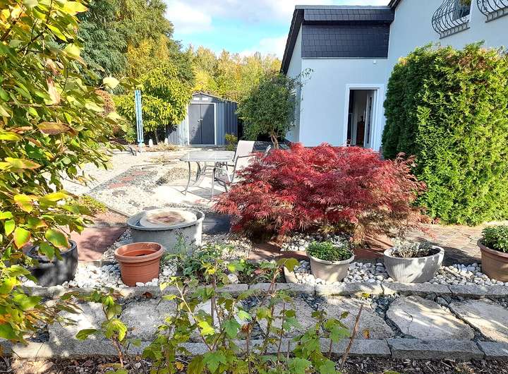 - Terrasse mit Blick in den Garten