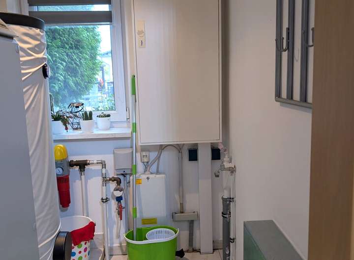 - Erdwärmepumpe mit Fußbodenheizung in allen Räumen