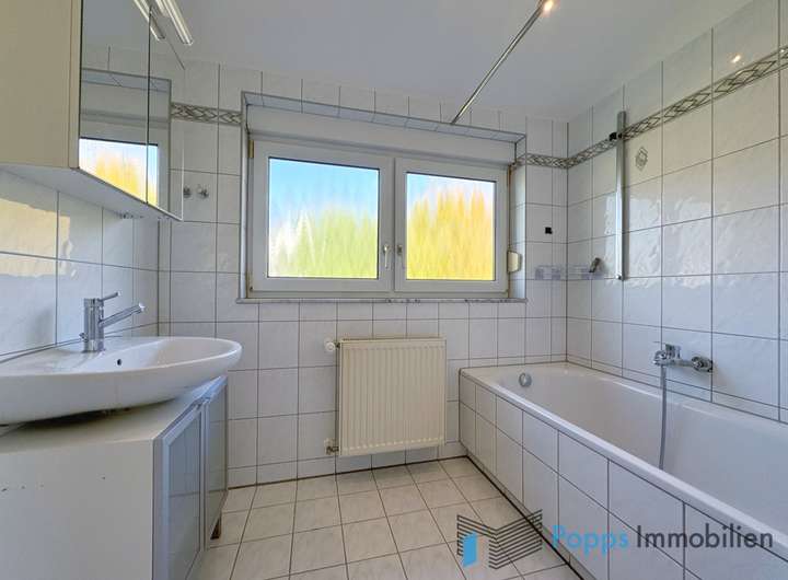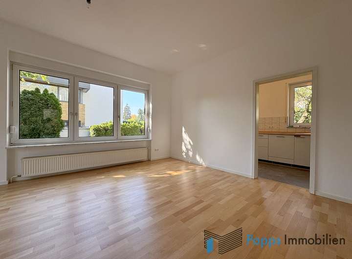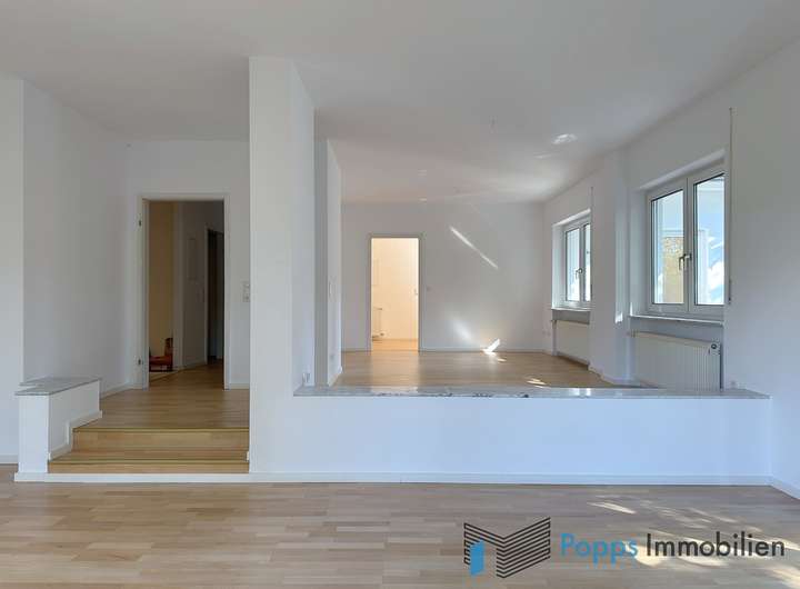 Es handelt sich um ein Eckgrundstück mit zwei Hauseingängen. Die ehemalige Hauptwohnung ist aufgeteilt in einen großzügigen, lichtdurchfluteten Wohn- und Essbereich mit angrenzender Küche, zwei Bädern und drei Schlafzimmern. Die ehemals kleinere Wohnung ist aufgeteilt in zwei Zimmer, Küche, Bad- und Gäste-WC und sie eignet sich hervorragend für ein häusliches Büro, für ein Aupair oder als Unterkunft für eine Pflegekraft im Alter. Für eine Vermietung müssten die entfernten Trennwände wieder hergestellt werden.