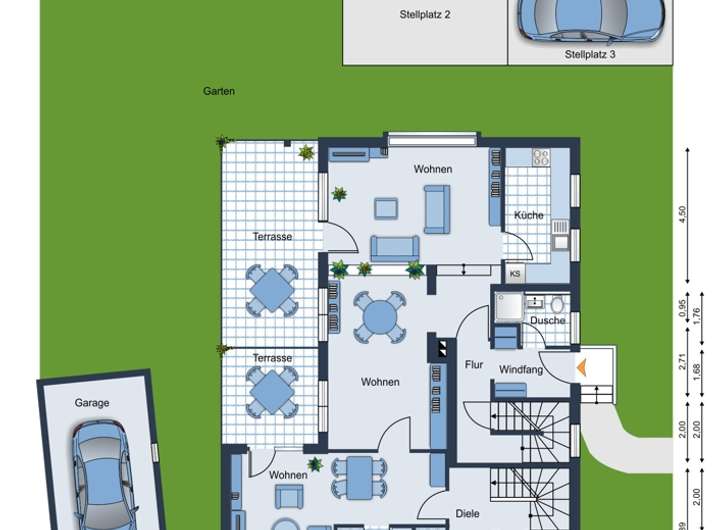 - die eigene Garage und drei zusätzliche Außenstellplätze.