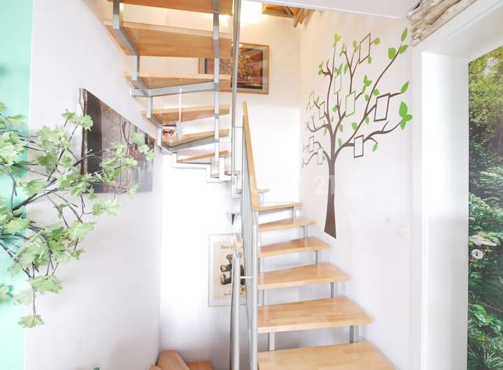 Diese gepflegte Doppelhaushälfte in Heusenstamm bietet auf einer Wohnfläche von ca. 120 m² und einer Nutzfläche von ca. 41,61 m² ausreichend Raum für individuelles Wohnen. Das im Jahr 2004/ 2005 erbaute Doppelhaus überzeugt durch eine gut durchdachte Raumaufteilung und moderne Ausstattung sowie der Fußbodenheizung, welche für eine angenehme Wärme und komfortables Raumklima sorgt. Im Erdgeschoss befindet sich das großzügige Wohnzimmer mit großen bodentiefen Fenstern, die für viel Tageslicht sorgen und direkten Zugang zur Terrasse bieten. Angrenzend an das Wohnzimmer befindet sich die Küche, die ideal in das offene Raumkonzept integriert ist. Ein Gäste-WC sorgt im Erdgeschoss für zusätzlichen Komfort. Das Obergeschoss ist mit zwei hellen Schlafzimmern, sowie einem Tageslichtduschbad mit Wanne optimal geschnitten. Das Dachgeschoss bietet zwei weitere Schlafzimmer, die durch ihre gemütliche Atmosphäre als private Rückzugsorte oder eigene Bereiche ideal geeignet sind. Der vollunterkellerte Bereich des Hauses bietet zusätzlich einen großzügigen Partyraum samt liebevoll gestalteter Bar, der sich hervorragend für gesellige Abende oder als Hobbyraum nutzen lässt. Des Weiteren bietet der Keller ausreichend Stauraum. Ein Stellplatz im Freien sowie ein Gartenhäuschen runden dieses Angebot ab. Diese Doppelhaushälfte in Heusenstamm ist ideal für Familien oder Paare, die Wert auf modernen Wohnkomfort in einer ruhigen Lage mit hervorragender Anbindung legen.