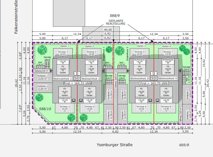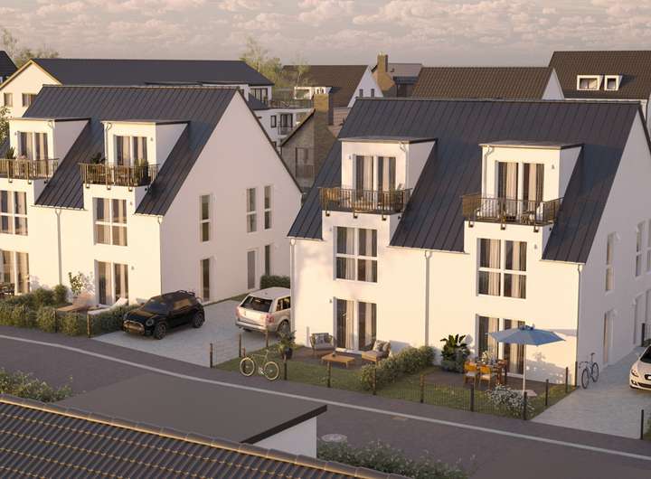 Jede der vier Haushälften beeindruckt mit ca. 141 m² Wohnfläche, verteilt auf Erdgeschoss, Obergeschoss und ein vollständig ausgebautes Dachgeschoss. Mit insgesamt 5 Zimmern, 2 stilvollen Badezimmern sowie einem Gäste-WC bieten die Häuser großzügigen Raum für modernes Familienleben oder anspruchsvolles Arbeiten und Wohnen unter einem Dach.