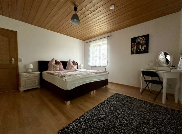 Das Obergeschoss und das Dachgeschoss werden aktuell als Ferienwohnung genutzt. Daher gibt es auch eine sep. Außentreppe als Zugangsbereich.