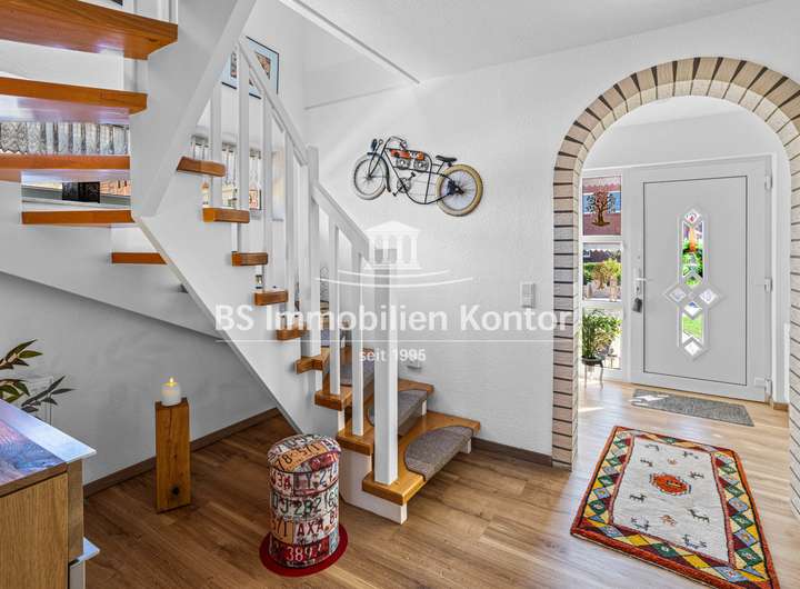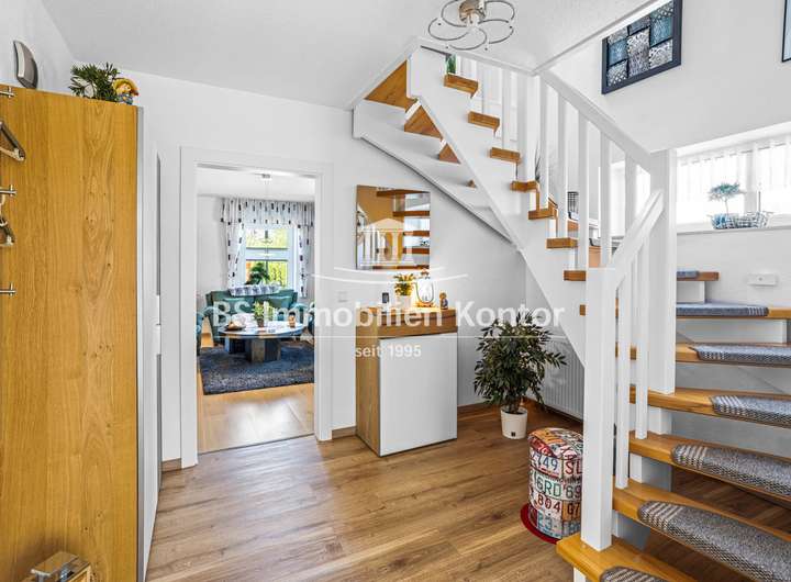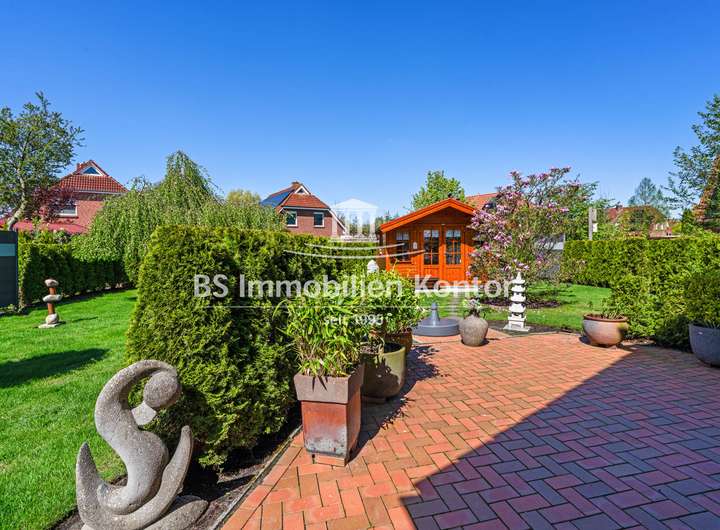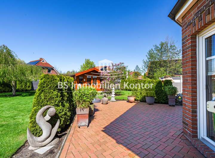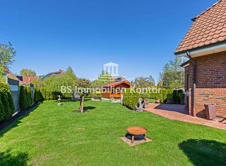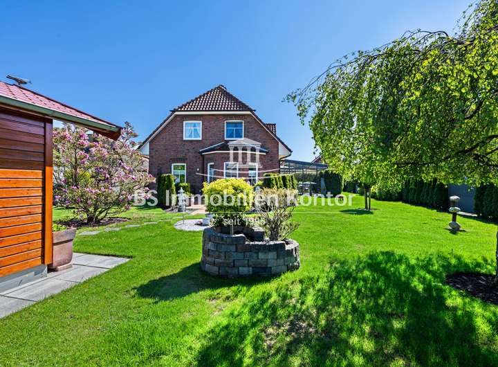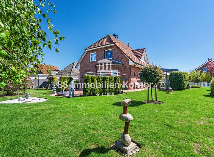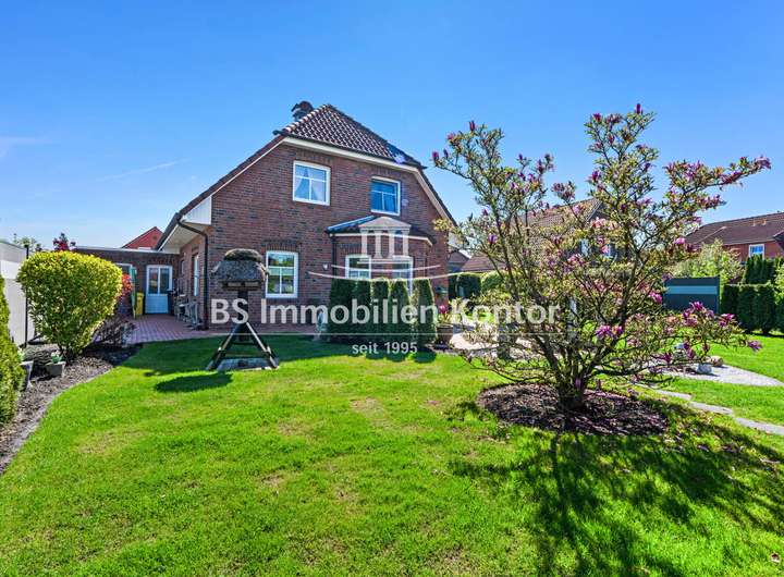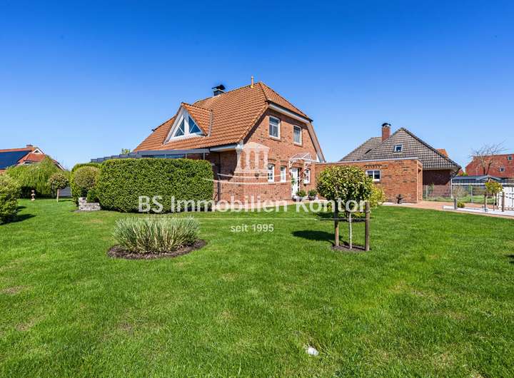 Sie suchen ein Wohnhighlight in Emden? Dann sind Sie hier genau richtig! Dieses top gepflegte Einfamilienhaus befindet sich in bevorzugter Lage im Stadtteil Larrelt und überzeugt mit einer hochwertigen Ausstattung und zahlreichen Extras. Das DOC-Einkaufscenter und diverse Bildungseinrichtungen erreichen Sie fußläufig. Das Einfamilienhaus wurde 1997 in konventioneller Massivbauweise errichtet mit einem Krüppelwalmdach errichtet. In den letzten Jahren erfolgten umfangreichen Renovierungsmaßnahmen (vgl. Aufstellung). Die zeitlose Architektur vereint ostfriesische Gemütlichkeit mit einem hohen Maß an Wohnkomfort. Den Mittelpunkt der Immobilie bildet der großzügige, offen gestaltete Wohn-/Essbereich mit Kamin. Hier genießen Sie einen traumhaften Blick in den hochwertig angelegten Garten. Die Eigentümer investierten 2020 einen Betrag von ca. 60.000,00€ in die Gartengestaltung inkl. Drainage (vgl. Aufstellung). Die überdachte Terrasse verfügt über eine Süd-Ausrichtung und lädt Sie an langen Sonnentagen zum Relaxen & Entspannen ein. Eine formschöne Treppe im Flur führt Sie in das Obergeschoss. Hier erwarten Sie ein Elternschlafzimmer, zwei Kinderzimmer und ein Vollbad. Das ca. 849qm große Grundstück bietet ausreichend Privatsphäre und ist gärtnerisch ansprechend angelegt. Die weißen Kunststofffenster sind Isolierverglast und mit Jalousien ausgestattet. Beheizt wird das Objekt durch eine Gas-Z.-Heizung. Eine Immobilie für Menschen, die Wert auf Lebensqualität legen und auf die Nähe zum Stadtkern von Emden nicht verzichten möchten.