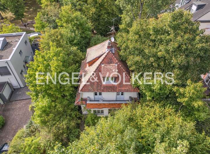 In dem großen Baufenster könnte auch eine spannende Verbindung aus Alt und Neu entstehen. Die charmante Villa aus dem Baujahr 1929 zu bewahren, könnte ein einzigartiges und repräsentatives Zuhause entstehen lassen. Der Bebauungsplan mit der GFZ von 0,5 und einer GRZ von 0,3 erlaubt traumhafte Erweiterungen. Die hübsche Villa mit dem großzügigen, lichtdurchfluteten Wohn- und Essbereich im Erdgeschoss und den vier schönen Räumen im Ober- und Dachgeschoss könnte nach hinten in einen modernen Neubau übergehen. Mit etwas Baumschnitt, viel Glas und der entsprechenden Architektur könnte man mit Blickachsen und Perspektive die spektakuläre Sicht auf die Frankfurter Skyline ins ganze Haus holen. Das Gartengeschoss mit Sauna, Badewanne und direktem Zugang in den idyllischen Garten bietet die perfekte Grundlage für einen großzügigen Wellness- und Spabereich in vollkommener Privatsphäre.