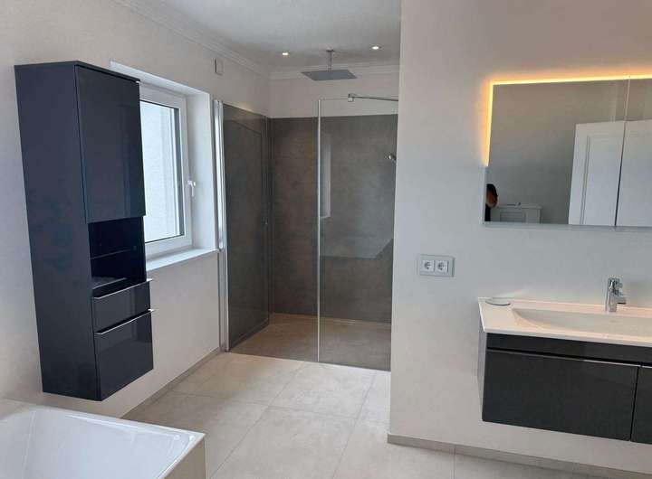 Drei voll ausgestattete Badezimmer sowie ein separates Gäste-WC bieten höchsten Komfort mit hochwertigen Armaturen, automatischen WCs, Bidets, bodengleichen Duschen und edlen Granitwandverkleidungen.