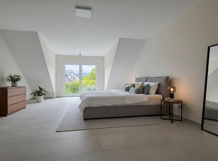 Das luxuriöse Raumkonzept umfasst 6 Zimmer, darunter 4 Schlafräume und ein separates, vollständig abtrennbares Studio im obersten Geschoss – ideal für Gäste, Homeoffice oder als Rückzugsort.
