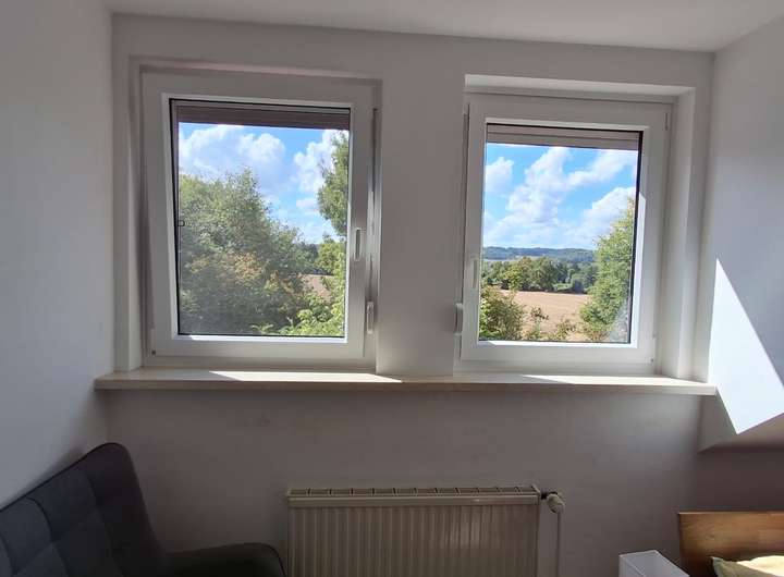 Durch die angrenzenden Felder kann man sich auf der Terrasse, welche auf der Rückseite des Objekts gelegen ist, sehr gut erholen und hat dennoch die Nähe zur Stadt Göttingen.