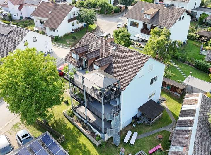In einer familienfreundlichen und ruhigen Lage mit hervorragender Verkehrsanbindung zur A8 gelegen, überzeugt die Immobilie durch eine durchdachte Aufteilung in drei abgetrennte Wohneinheiten in Erd-, Ober- und Dachgeschoss sowie eine Gewerbeeinheit.