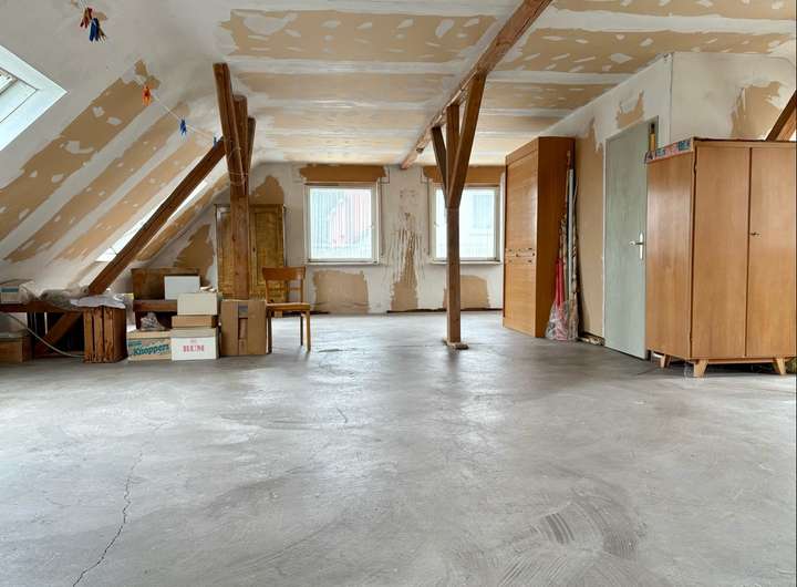 Das großzügige Dachgeschoss ist für den Ausbau weiterer Wohnfläche bereits vorbereitet. Hier können Sie zusätzlichen Wohnraum gestalten.