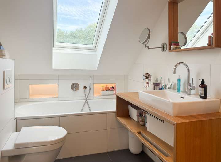 •modernes Vollbad mit Badewanne und Dusche im Obergeschoss