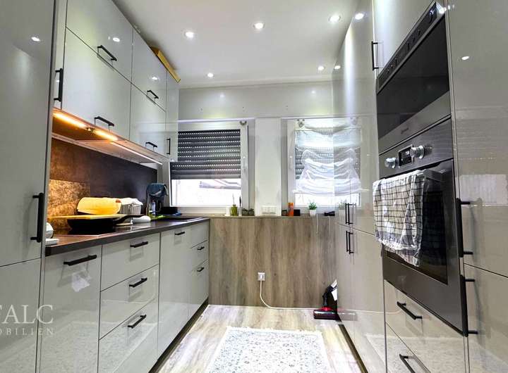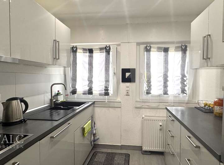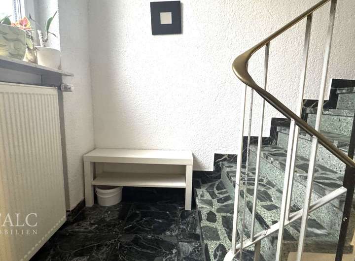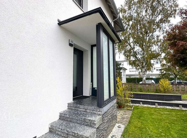 Die im Jahr 2018 verbauten Schüco-Fenster mit 3-fach-Verglasung garantieren hervorragende Energieeffizienz und tragen zu einem angenehmen Wohnklima bei. Ergänzt durch elektrische Rollläden entsteht hier ein Maximum an Komfort und Sicherheit. Ebenfalls 2018 wurde die Fassade mit einer 10 cm starken Wärmedämmung versehen, wodurch das Haus nicht nur optisch modern wirkt, sondern auch energetisch auf einem hohen Niveau liegt.
