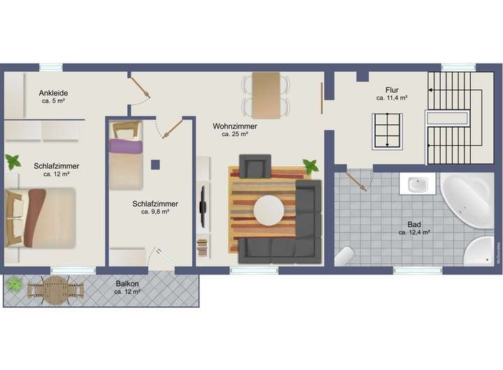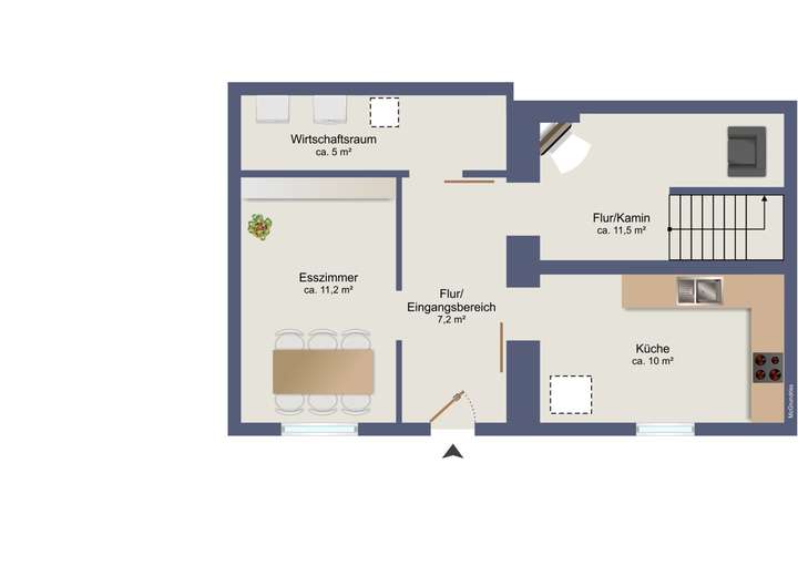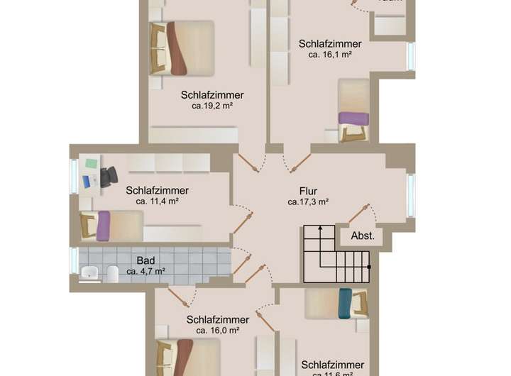 Bei den im Exposé dargestellten Grundrissen handelt es sich ausdrücklich um Grundrissskizzen, die lediglich dem Verständnis der Raumaufteilung dienen sollen. Für angegebene Maße o.a. übernimmt der Makler keine Haftung. Diese sind vom Kaufinteressenten bei Bedarf selbst aufzunehmen.