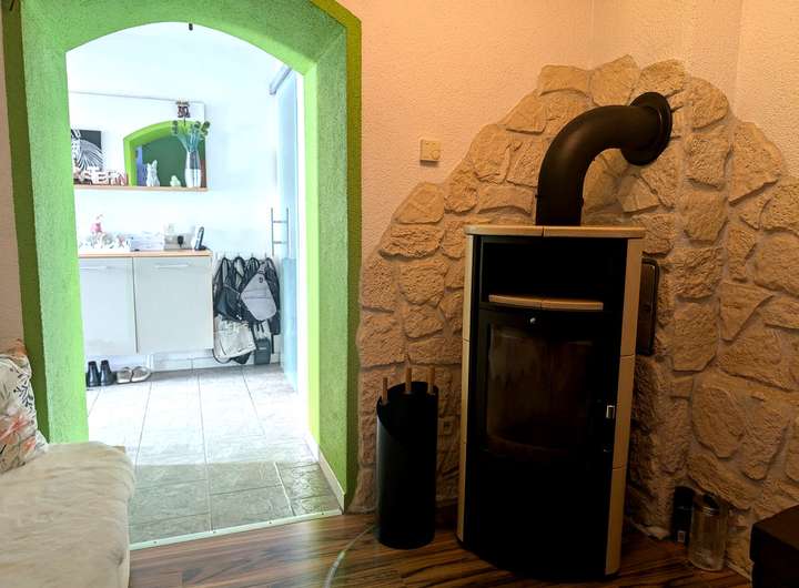 - Partyraum gefliest (ca. 35 m²) mit Kaminofen & WC