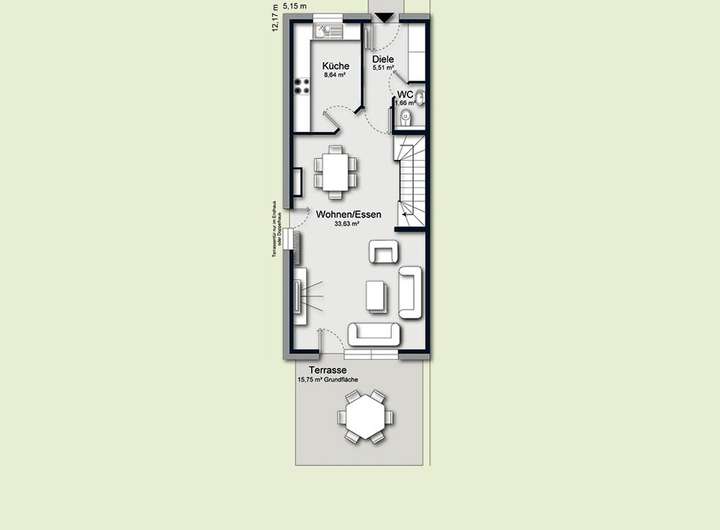 Das Reihenhaus wird ohne Boden- und Wandbeläge übergeben, sodass diese nach Ihren eigenen Vorstellungen gestalten können.