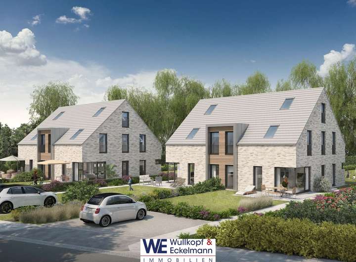 Diese moderne Haushälften entstehen auf einem ca. 575 m² großen Grundstücksteil (ideelle Teilung) und überzeugen durch eine klare, zeitgemäße Architektur in Kombination mit einer hochwertigen Ausstattung. Die Häuser erstrecken sich über ein Erd-, Unter- und Obergeschoss sowie einen ausgebauten Spitzboden und bieten viel Platz für individuelles Wohnen.