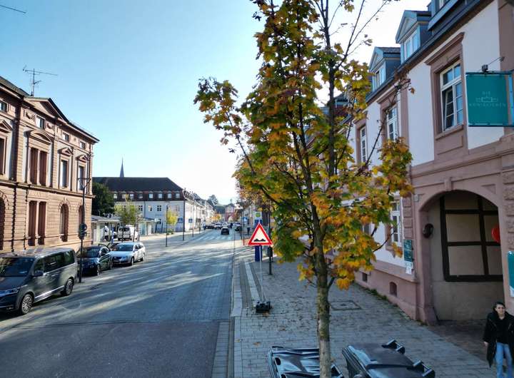 Die Karl-Friedrich-Straße selbst ist verkehrsberuhigt und gehört zu den klassischen innerstädtischen Straßen, die das Flair der Stadt widerspiegeln. Die Bebauung ist gewachsen, überwiegend kleinteilig und bietet eine angenehme Nachbarschaftsatmosphäre – ideal für Wohnen, Arbeiten oder Investitionen.