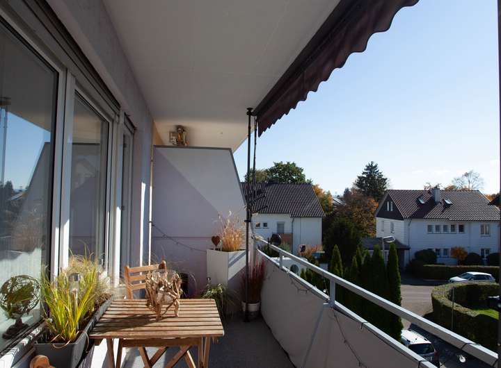 Der großzügige Wohn- und Essbereich ist lichtdurchflutet und bietet direkten Zugang zum großen Balkon – perfekt für gemütliche Stunden im Freien.