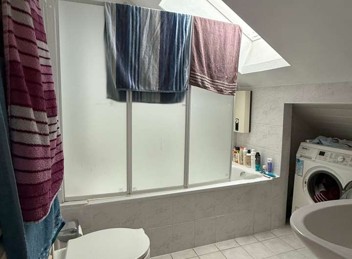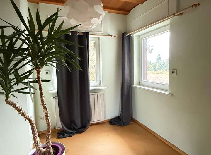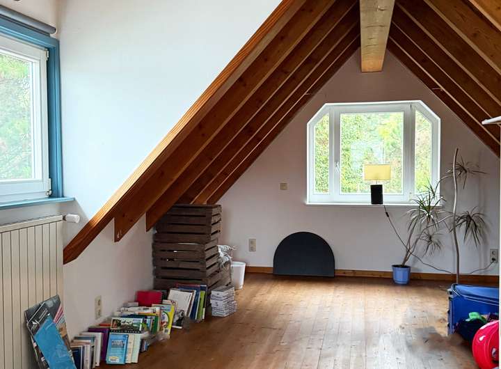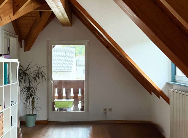 Im Obergeschoss befindet sich eine weitere Drei-Zimmer-Wohnung sowie ein weiteres Zimmer im Anbau, das aber zur Wohnung im Dachgeschoss gehört und über ein Treppe mit dem Dachgeschoss verbunden ist.